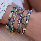 Un bracelet raffiné aux nuances profondes et mystiques, associant la force de la terre à l’intuition spirituelle.
