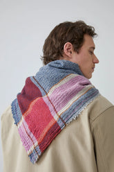 Nouvelle pièce emblématique du vestiaire Moismont, le foulard Maddy N°687 Indigo allie chaleur et raffinement.