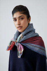 Son format généreux de 90 x 90 cm se prête à tous les styles, tandis que ses bandes contrastantes aux extrémités créent un jeu graphique dynamique, expression d’une modernité subtile. Multicolore, il insuffle une énergie vive et élégante à chaque tenue.La broderie "M" sur le bord, signature discrète de Moismont, incarne l’exigence du détail et l’artisanat précieux qui définissent la marque.
