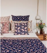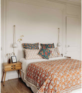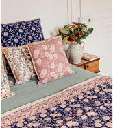 Housse de coussin fleuri JAMINI en coton imprimé à la main par des artisans experts en Inde dans le plus grand respect des traditions indiennes.