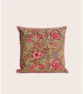 Housse de coussin fleuri JAMINI en coton imprimé à la main par des artisans experts en Inde dans le plus grand respect des traditions indiennes.
