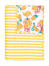 - Réversible – Une face au motif Roses (motif floral coloré) et l'autre face Stripes Jaune (rayés jaune et blanc)