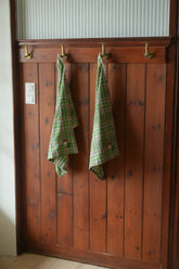 Lot de 2 torchons de cuisine en coton tissé à carreaux.