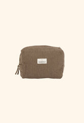Trousse de toilette en coton doublée et imperméable. Pratique et élégante, elle offre deux poches intérieures et une anse latérale.